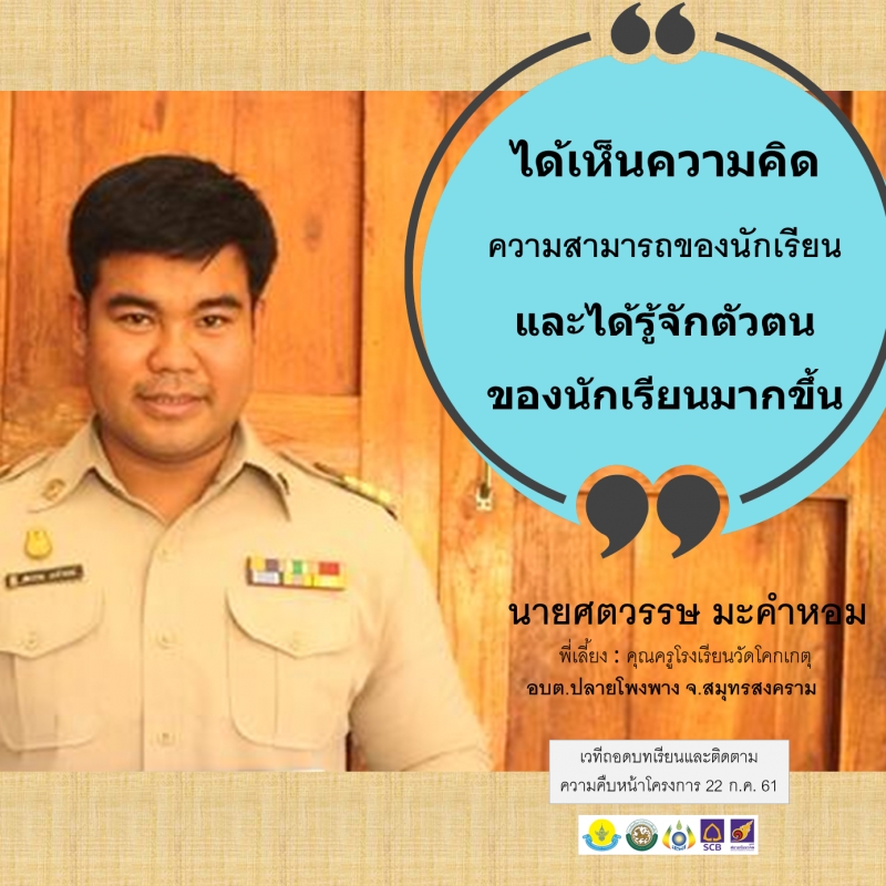 "ได้เรียนรู้การทำงานกับชุมชน แลกเปลี่ยนการทำงานกับหน่วยงานภายนอก ได้เห็นความคิด ความสามารถของนักเรียน และได้รู้จักตัวตนของนักเรียนมากขึ้น"