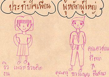 “เพื่อน :- วิว เพราะช่วยคิดงาน / ผู้หลักผู้ใหญ่ :- คุณครูธรรมนูญ มีเสานา คุณครูสอนดีมาก"