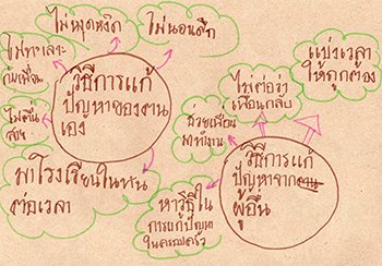 “วิธีแก้ปัญหาจากตนเอง :- ไม่หงุดหงิด ไม่นอนดึก ไม่ทะเลาะกับเพื่อน ไม่ตื่นสาย มาโรงเรียนให้ทันต่อเวลา / วิธีแก้ปัญหาจากผู้อื่น :- แบ่งเวลาให้ถูกต้อง ไม่ต่อว่าเพื่อนกลับ ชวนเพื่อนมาทำงาน หาวิธีในการแก้ปัญหาในครอบครัว"