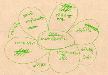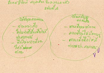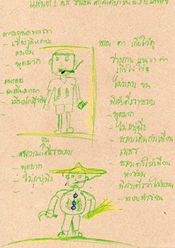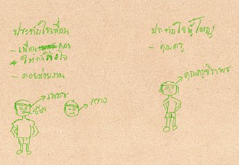 “เพื่อน :- เพชรและกวาง คอยให้กำลังใจและช่วยงาน / ผู้หลักผู้ใหญ่ :- คุณครูจิราพร"