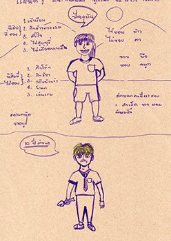 “ปัญหาจากตนเอง :- ไม่ทำงาน ไม่ทำการบ้าน / ปัญหาจากผู้อื่น :- เพื่อนทะเลาะกันเรื่องทำความสะอาด เพื่อนล้อ เพื่อนแกล้ง"