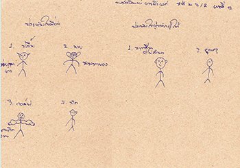 “เพื่อน :- ปลื้มช่วยงานเก่ง มายชอบหาของ กอล์ฟคนคิดงาน พัด / ผู้หลักผู้ใหญ่ :- ชาวบ้านที่ไปศึกษา คุณครู"