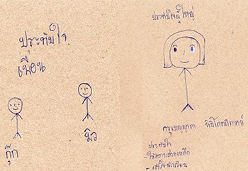“เพื่อน :- กุ๊ก มิว / ผู้หลักผู้ใหญ่ :- ครูเบญญาภา ให้ความช่วยเหลือและเข้าใจนักเรียน"