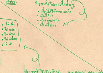 “ปัญหาจากตนเอง :- ไม่กล้า ไม่ถนัด ไม่ชอบ ไม่เปลี่ยน ไม่ฟัง / ปัญหาจากผู้อื่น :- เพื่อนไม่ให้ความร่วมมือ เพื่อนไม่ฟัง เพื่อนหยอกล้อกัน เพื่อนขี้เกียจ"