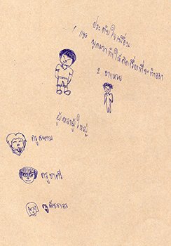 “เพื่อน :- แชะ พูดมากทำให้คิดเรื่องที่จะทำออก อาเหวย / ผู้หลักผู้ใหญ่ :- ครูสยาม ครูชาตรี ครูพัชราภร"