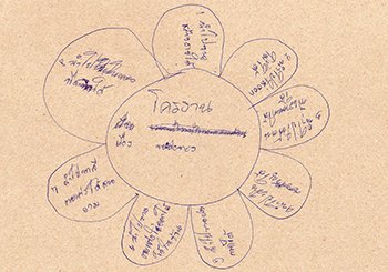 “เพื่อน :- ส้ม ฟิล์ม มุกดา นิ่ม นิดหน่อย โน่ เพื่อนช่วยทำงานไม่ทิ้งกัน / ผู้หลักผู้ใหญ่ :- ครู อธิบายให้เราเข้าใจ ไม่ทิ้งเรา"