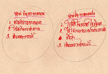 “วิธีแก้ปัญหาจากตนเอง :-ตั้งสติสงบอารมณ์ของตนเอง ใช้สติมากกว่าอารมณ์ เดินออกจากตรงนั้น / วิธีแก้ปัญหาจากผู้อื่น :- ใช้สติในการแก้ปัญหา ไม่ใช้อารมณ์ของตนเองในการตัดสินใจ เดินออกจากที่ตรงนั้น"