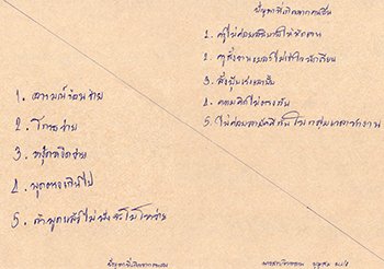 “เพื่อน :- ตูจเข้าใจทุกเรื่องระบายได้ ยิวให้คำปรึกษาทุกอย่างทุกเรื่อง แป้งให้กำลังใจทุกเรื่องไม่ว่าจะเรื่องอะไร หลินพายิ้มได้หัวเราะได้อยู่ด้วยแล้วมีความสุข / ผู้หลักผู้ใหญ่ :- ครูพัชและครูน้ำ เรียนกับครูแล้วมีความสุขคุยได้ทุกเรื่อง ปรึกษากับครูน้ำได้ตลอด อยู่กับครูแล้วรู้สึกเฮฮามีความสุข ยิ้ม หัวเราะ"