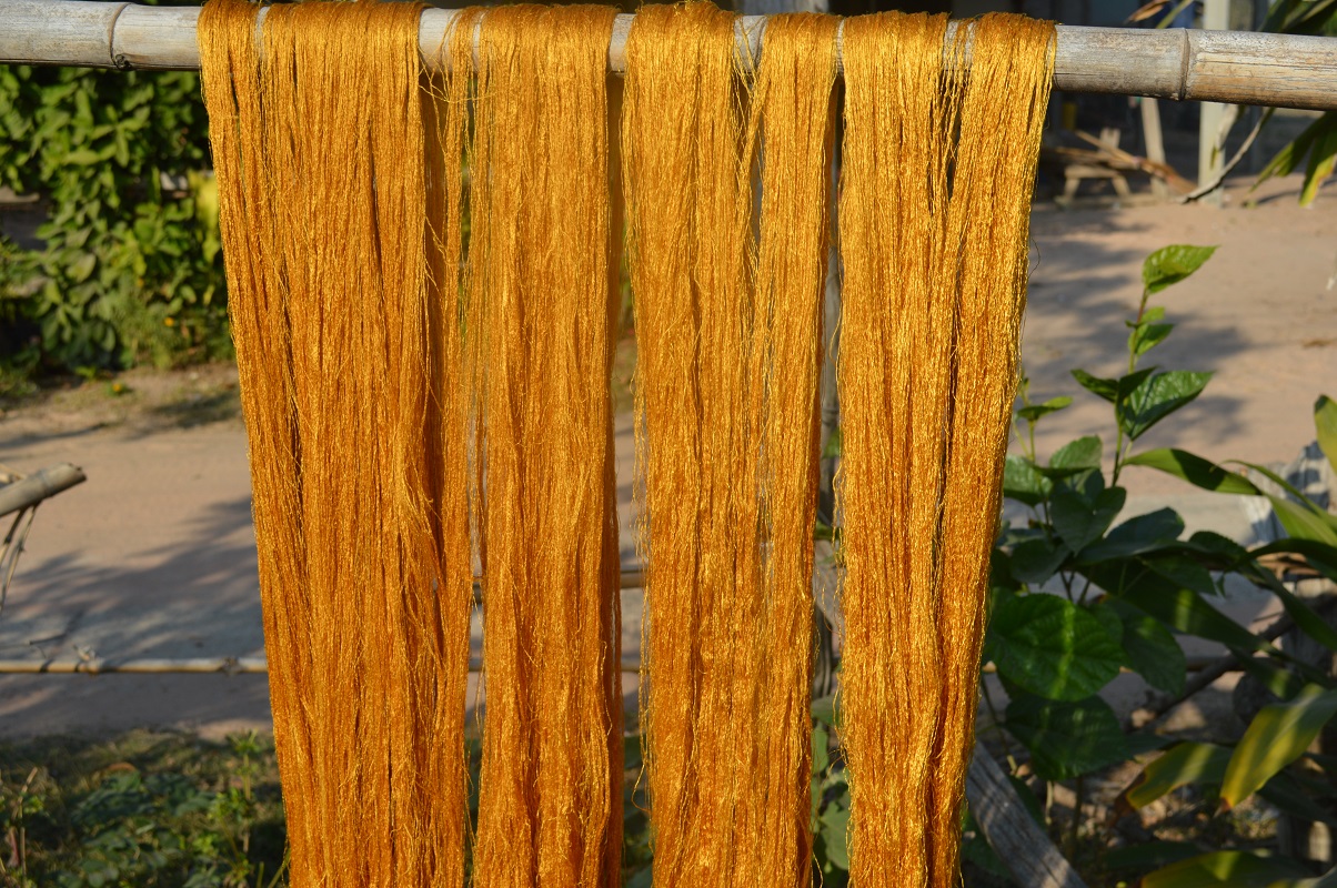เส้นไหมสีเหลืองด้จากการย้อมเข