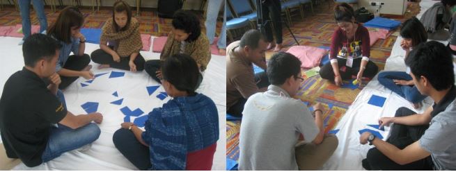 โจทย์ ให้ทุกคนประกอบชิ้นส่วนให้เป็นสี่เหลี่ยมจัตุรัส