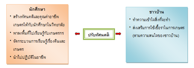 เมื่อได้สมาชิกเข้าร่วมโครงการ 15 คน จากนั้นก็พากันลงพื้นที่ กิน นอน เรียนรู้ และลงมือปฏิบัติการทำเกษตรในพื้นที่จริงของชาวบ้านที่ ต.หนองมะโมง อ.หนองมะโมง จ.ชัยนาท ในช่วงเวลา 3 วัน 2 คืน ระหว่างการทำกิจกรรมมีวงพูดคุยเกี่ยวกับทัศนคติของนักศึกษาที่มีต่อการทำอาชีพเกษตร หลายคนสะท้อนให้ฟังว่า “อาชีพเกษตรกรเป็นอาชีพที่ต้องใช้แรงงาน เหนื่อย” บางคนไม่เห็นคุณค่าของการทำเกษตร การลงพื้นที่ครั้งนี้นอกจากจะได้เรียนรู้การทำเกษตรแล้ว ยังถือได้ว่าเป็นการปรับจูนทัศนคติและแลกเปลี่ยนมุมมองร่วมกันของนักศึกษาและเกษตรกรอีกด้วย