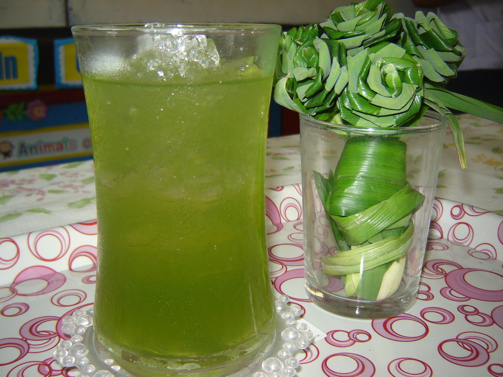 3. Put pandanus leaves to the blender. Add water and blend until smooth.
