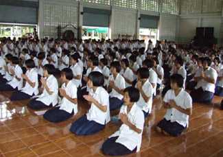 ตั้งแต่นักเรียนเข้ามาโรงเรียน เช่น การไหว้พระก้าวหน้าของครูและนักเรียน