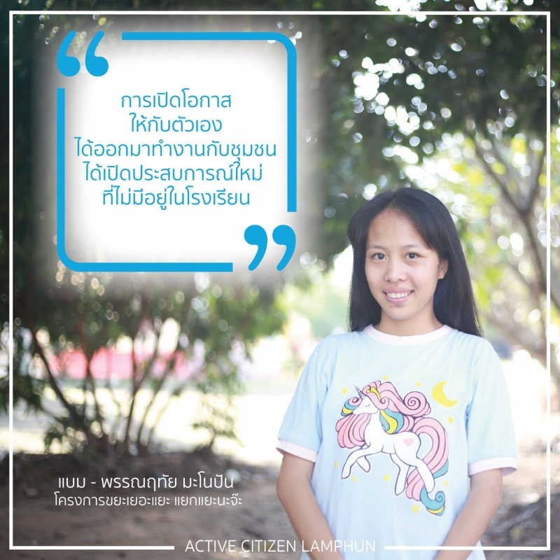 “การเปิดโอกาสให้กับตัวเอง ได้ออกมาทำงานกับชุมชน ได้เปิดประสบการณ์ใหม่ ที่ไม่มีอยู่ในโรงเรียน”