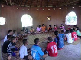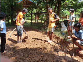 หลังจากเสร็จงานบุญกฐินในช่วงบ่าย ยังพอมีเวลาที่จะพูดคุยกันก่อนค่ำ พวกเราได้ชักชวนเด็กๆ ลงไปที่ศูนย์เรียนรู้ชาวดินเพื่อถอดบทเรียน หลายคนประทับใจเรื่องเล่าของพ่อสวัสดิ์ บางคนประทับใจความสามารถที่สามารถตอบปัญหาเรื่องที่เกี่ยวกับพุทธประวัติที่พ่อสวัสดิ์ตั้งคำถามมา บางคนรู้สึกประทับใจการได้ช่วยเหลืองานและได้เห็นการช่วยเหลือกันของชาวบ้าน บางคนก็รู้สึกประทับใจที่ได้เรียนรู้เรื่องราวของบุญกฐิน หลังจากสรุปบทเรียนเกี่ยวกับบุญกฐินเสร็จ ผู้เขียนก็ได้ชักชวนเด็กๆ ย้อนรำลึกถึงความเป็นมาของศูนย์เรียนรู้ชาวดิน โดยมีพี่ศักดาเป็นผู้เชื่อมโยงอดีตกับปัจจุบันให้ ทำให้น้องๆ ได้เห็นความพยายามของพี่ๆ ที่จะก่อเกิดสถานที่แห่งนี้ บางคนบอกว่า “ดีจังเลย...ทำไมเราเกิดไม่ทันช่วงนั้น” เราก็มองเห็นว่าเด็กๆ เหล่านี้ก็อยากมีส่วนร่วมในการสร้างประวัติศาสตร์ดีๆ แก่ชุมชนของพวกเขา ผู้เขียนจึงชักชวนต่อว่า “แล้วพวกเราจะทำอะไรดีหละ เพื่อเป็นการสืบต่อสิ่งที่พี่ๆ ทำมา” สิ่งดีๆ ก็ได้พร่างพรายออกมา ดังเช่น “สร้างบ้านดินเพิ่ม เพาะเห็ด ปลูกผัก เลี้ยงปลา แสดงละคร แสดงหมอลำ ขายของในตลาดชุมชน ฯลฯ” ผู้เขียนจึงให้หามติร่วมกันว่าจะทำอะไรก่อนหลังดี วันนั้นก่อนแยกย้ายกันกลับพวกเราก็ได้แผนระยะสั้นคือ จะทำแปลงผักปลูกผักในวันพรุ่งนี้ และในวันอาทิตย์หน้าเราจะเปิดตลาดชุมชนอีกครั้งหนึ่ง น้องๆ ก็จัดสรรกันว่าใครจะทำหรือหาอะไรมาขาย เมื่อผักของพวกเขาเติบโตเขาก็จะได้ขายผักในตลาดชุมชนต่อไป