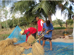 ฟังเสียงผู้เฒ่ากันแล้วก็มาฟังเสียงเด็กๆ กัน เริ่มจากศักดาเจ้าของนาบอกว่า “ตั้งแต่เล็กจำได้ว่าเคยขึ้นไปบนลานข้าวอยู่ครั้งหนึ่ง ในตอนนั้นรู้สึกว่ามันสูงมากแต่มาถึงวันนี้ก็รู้สึกว่ากองข้าวก็ไม่ค่อยสูงเท่าไหร่ ก็ดีที่ได้มาทำพิธีแบบนี้ ไม่ใช่แค่ว่าเกี่ยวข้าวไปสีข้าวแล้วก็เสร็จ แต่การทำพิธีกรรมแบบนี้ทำให้เห็นว่าตั้งแต่แรกของการทำนามาจนถึงวันนี้มันมีความทุกข์ยากอย่างไรบ้าง” น้องหน่องบอกว่า “จำไม่ได้ว่าตั้งแต่เล็กๆ มันมีกองข้าวแบบนี้อยู่ไหม แต่ก่อนมานาก็มาดูนาเฉยๆ ไม่เคยได้มาทำนา พิธีแบบนี้ก็ไม่เคยเห็นมาก่อน พอมาเห็นพิธีแบบนี้ก็รู้สึกดี แต่ไม่รู้ว่าต้องทำอะไรบ้าง”