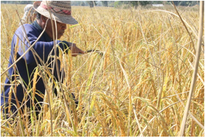 ในตอนเช้ามืด พ่อเฉลี่ยก็ได้สีข้าวของตนเอง เดิมทีประเมินว่าคงได้ข้าวน้อยกว่าปีที่ผ่านมา เพราะข้าวล้มตั้งแต่ช่วงตั้งท้อง และไม่งามเท่ากับปีที่ผ่านมา บางคนเห็นกองข้าวแล้วประเมินว่า น่าจะได้สัก 105 กระสอบ แต่เมื่อสีออกมาแล้วได้ถึง 115 กระสอบ เท่ากับปีที่แล้วเลย ก็เป็นที่ตื่นเต้นกันใหญ่ว่า “เราทำบุญมาดีเน้า...” เห็นมั้ย? บอกแล้วว่าไม่เชื่ออย่าลบหลู่...