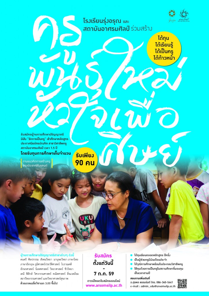 รับสมัครผู้จบปริญญาตรี มีฝันรักการเป็นครู จำนวน 90 คนรับทุนการศึกษาเต็มจำนวนเพื่อเข้าเรียนในหลักสูตรประกาศนียบัตรบัณฑิต สาขาวิชาชีพครู สถาบันอาศรมศิลป์