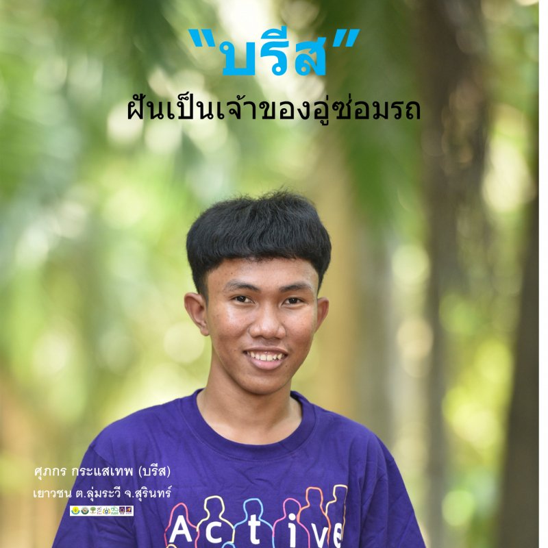 “บรีส” บอกว่าตอนนี้ตนเองเรียนอยู่มัธยมศึกษาตอนต้น ที่ กศน.จอมพระ ยังไม่ได้มีอาชีพอะไร แต่มีความฝันอยากมีอาชีพเปิดอู่ซ่อมรถจักรยานยนต์ “ตอนนี้ผมสามารถเปลี่ยนอะไหล่รถมอเตอร์ไซด์ได้ แต่อยากเรียนเพิ่มคือการถอดเครื่อง ประกอบเครื่องครับ เพื่อมาเป็นอาชีพในอนาคตได้”