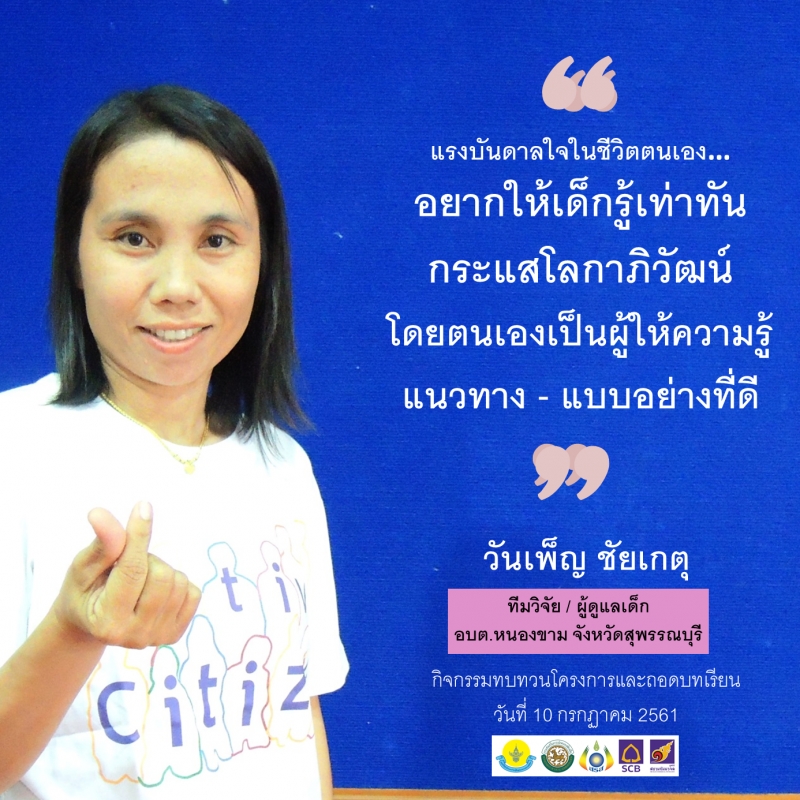 "อยากให้เด็กรู้เท่าทันกระแสโลกาภิวัฒน์ โดยตนเองเป็นผู้ให้ความรู้ แนวทาง แบบอย่างที่ดี"
