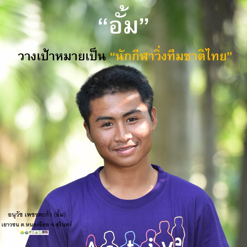 "อั้ม - อนุวัช เพชรตะกั่ว” อายุ 16 ปี เรียนอยู่มัธยมศึกษาปีที่ 4 โรงเรียนหนองอียอวิทยา หนึ่งในเยาวชนในระบบจากตำบลหนองอียอ ที่มาเข้าร่วมเรียนรู้ใน ค่ายพัฒนาศักยภาพและสร้างเครือข่ายเยาวชนทั้งในและนอกระบบการศึกษา 25 อปท. จังหวัดสุรินทร์ (ภายใต้การดำเนินโครงการพัฒนาเยาวชนในชุมชนท้องถิ่น 4 ภาค) สนับสนุนโดยกรมส่งเสริมการปกครองท้องถิ่น , กสศ. , สถาบันยุวโพธิชน , สกสว. , ธนาคารไทยพาณิชย์ จำกัด(มหาชน) และมูลนิธิสยามกัมมาจล เมื่อวันที่ 1- 21 ตุลาคม 2562 ณ หน่วยอนุรักษ์และจัดการต้นน้ำห้วยสามสบ ต.ศรีสะเกษ อ.นาน้อย จ.น่าน ซึ่งเสร็จสิ้นไปเรียบร้อยแล้ว
