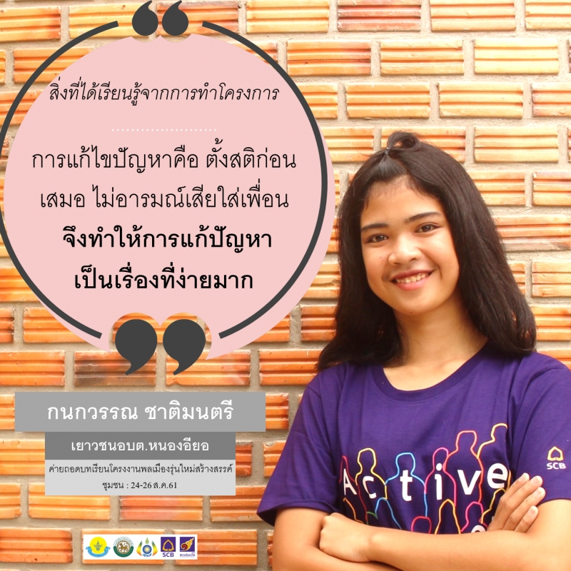 หนูจะแก้ไขปัญหาคือ ตั้งสติก่อนเสมอ ไม่อารมณ์เสียใส่เพื่อน มองโลกในแง่บวกเสมอ