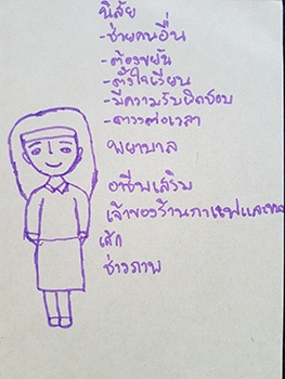 "พยาบาล นิสัยช่วยคนอื่น ต้องขยัน ตั้งใจเรียน มีความรับผิดชอบ ตรงต่อเวลา และมีอาชีพเสริมเป็นเจ้าของร้านกาแฟและขนมเค้ก เป็นช่างภาพ"