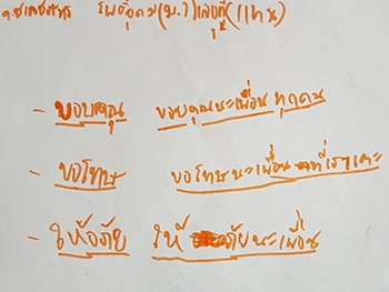 "ขอบคุณ :- เพื่อนๆ ทุกคน / ขอโทษ :- เพื่อน ที่เราเตะ / ให้อภัย :- เพื่อนๆ"