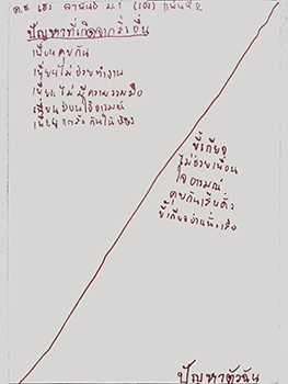"ปัญหาจากตัวเรา :- ขี้เกียจ ไม่ช่วยเพื่อน ใจร้อน / ปัญหาจากผู้อื่น :- เพื่อนคุยกัน เพื่อนไม่ช่วยทำงาน เพื่อนไม่ให้ความร่วมมือ เพื่อนใช้อารมณ์ เพื่อนแกล้งกันในห้อง"
