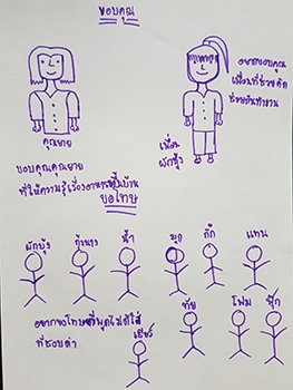 "ขอบคุณ :- คุณยายที่ให้ความรู้เรื่องอาหารพื้นบ้าน ผักบุ้งที่ช่วยคิดช่วยกันทำงาน / ขอโทษ :- ผักบุ้ง กุ้งนาง น้ำ มุก กิ๊ก แทน เชียร์ ทัย โฟม ฟุ๊ก ที่พูดไม่ดีใส่