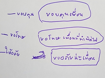 "ขอบคุณ :- เพื่อน / ขอโทษ :- เพื่อนที่ทำผิดไป"