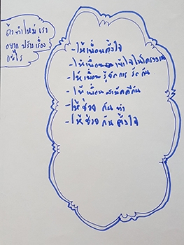 "ปัญหาจากตัวเรา :- เหนื่อย เบื่อ ปวดหัว ทำงานไม่เสร็จ / ปัญหาจากผู้อื่น :- เพื่อนไม่ช่วยงาน เพื่อนเบื่อ เพื่อนไม่ชอบทำ เพื่อนไม่เคยทำ"
