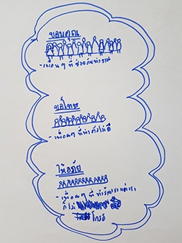 "ขอบคุณ :- เพื่อนๆ ที่ช่วยกันทำงาน / ขอโทษ :- เพื่อนๆ ที่ทำตัวไม่ดี / ให้อภัย :- เพื่อนๆ ที่ทำร้ายเรา"