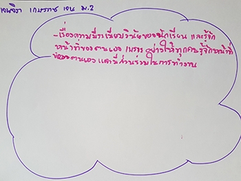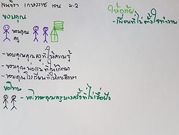"เรื่องความมีระเบียบวินัยของนักเรียน และรู้จักหน้าที่ของตนเอง เพราะอยากให้ทุกคนรู้จักหน้าที่ของตนเองและมีส่วนร่วมในการทำงาน"