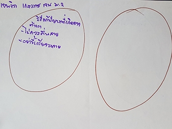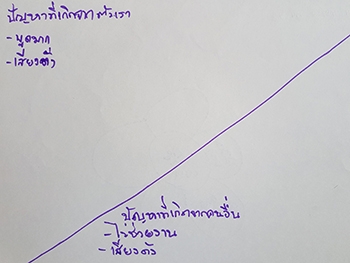 "ปัญหาจากตัวเรา :- พูดมาก เสียงดัง / ปัญหาจากผู้อื่น :- เพื่อนไม่ช่วยงาน เพื่อนเสียงดัง"