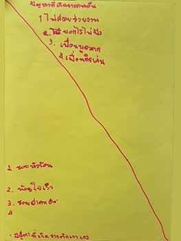 "ปัญหาจากตัวเรา :- หัวร้อน น้อยใจ ชอบว่าคนอื่น / ปัญหาจากผู้อื่น :- เพื่อนไม่ค่อยช่วยงาน บอกอะไรไม่ฟัง พูดมาก ติดเล่น"