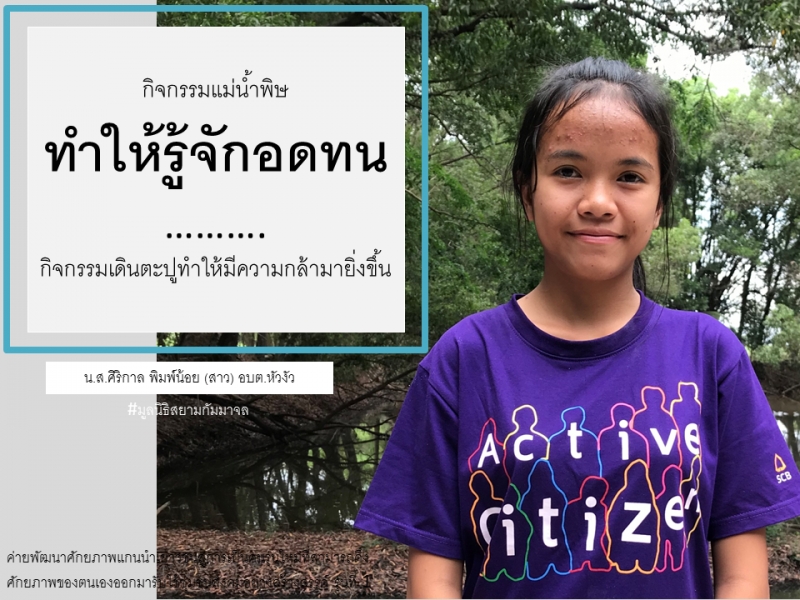 กิจกรรมแม่น้ำพิษ ทำให้เราเกิดแรงบันดาลใจในเรื่องความอดทน อดทนในการเกาะกลุ่มกัน บางคนขี่คอ เหยียบเท้าเพื่อไม่ให้ตกจากแผ่นหิน