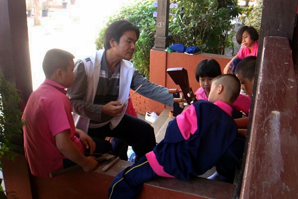 ในชมรม เด็กๆ จะช่วยกันทำงาน ขับเคลื่อนเครื่องดนตรีเล็กๆ ในมือน้อยๆ ของเขา ปัญหาแรกๆ ที่พบและเราช่วยกันแก้ปัญหาด้วยแนวคิดเศรษฐกิจพอเพียงเริ่มที่วันหนึ่ง เครื่องดนตรีของเด็กชำรุด เด็กมาบอกว่าเขาเล่นไม่ได้แน่ๆ สายไม่มี นมไม่มี แต่เขาไม่รู้ว่าส่วนประกอบแต่ละอย่างของเครื่องดนตรีคืออะไร ผมจึงคิดว่าเราต้องเปลี่ยนจากวิกฤติเป็นโอกาสให้ได้ ผมให้เด็กไปสำรวจว่าเครื่องดนตรีอะไรชำรุดบ้าง แรกๆ เด็กๆ ก็จะมาชี้ว่าอันนี้อันนั้นชำรุดแต่ระบุเป็นชื่อไม่ได้ แสดงว่าเขาไม่รู้จักแล้ว ผมจึงวางเงื่อนไขความรู้ ให้เขาเรียนรู้ชื่อและส่วนประกอบต่างๆ ของเครื่องดนตรีคือซึงและซะล้อก่อนเป็นอันดับแรก