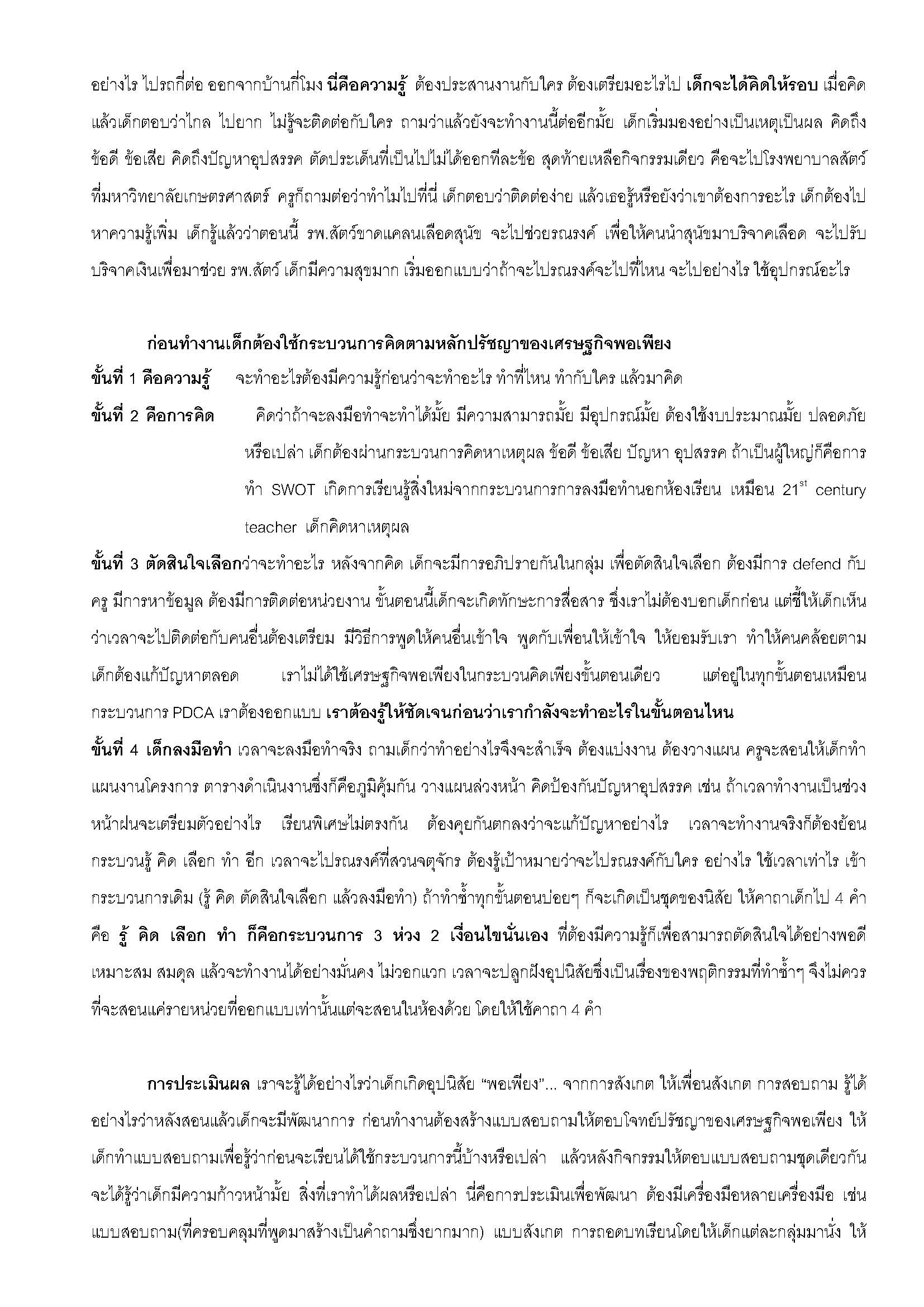ทำให้ผู้เรียนได้รู้วิธีการนำหลักปรัชญาของเศรษฐกิจพอเพียงมาปรับใช้ตั้งแต่