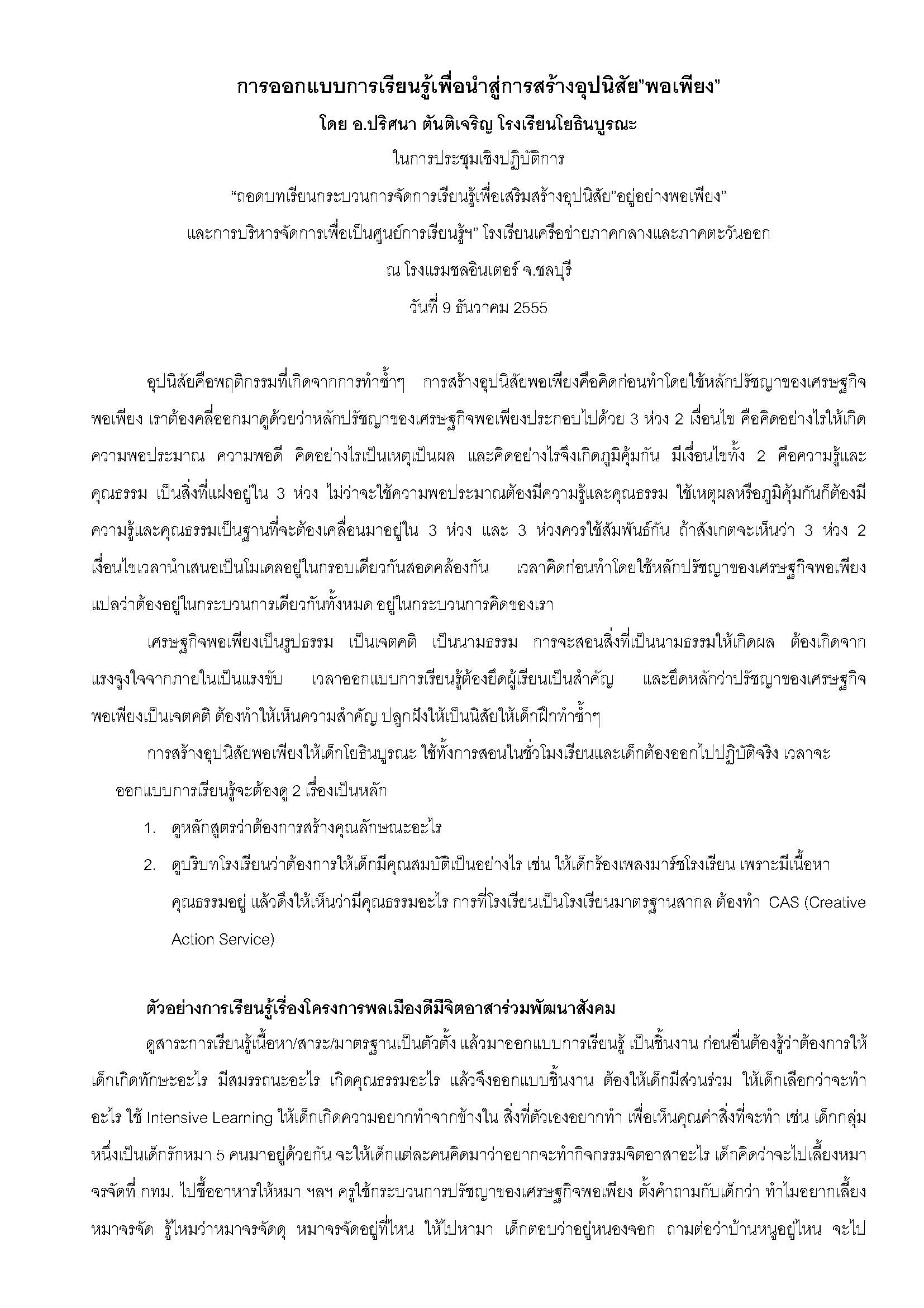 โดยในเรื่องนี้ท่านผู้อำนวยการเห็นด้วยในการนำเรื่องเศรษฐกิจพอเพียงไปใส่