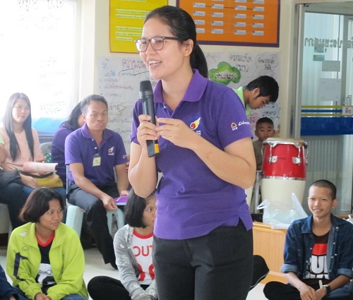 นอก จากนี้ฉันพยายามเชื่อมโยงเครื่องมือที่ได้เรียนมาจากหลายสำนักมาประยุกต์ใช้ ไม่ทิ้งการจัดการความรู้ก่อน ระหว่างและหลัง เพื่อดึงการมีส่วนร่วมของกลุ่มเป้าหมาย ตลอดทั้งใช้ความกล้าฝ่า(ฟัน)ความกลัวในใจ และกล้าทำกิจกรรมที่ตัวเองไม่ถนัดมากขึ้น นั่นก็คือ สันทนาการ ฉันเริ่มมีทักษะการพูดให้สนุก พาเล่นแต่ได้สาระมากขึ้น ดีใจจัง (คนหลังก็....เขมร)