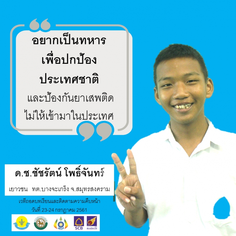 "อยากเป็นทหาร เพื่อปกป้องประเทศชาติ และป้องกันยาเสพติดไม่ให้เข้ามาในประเทศ"