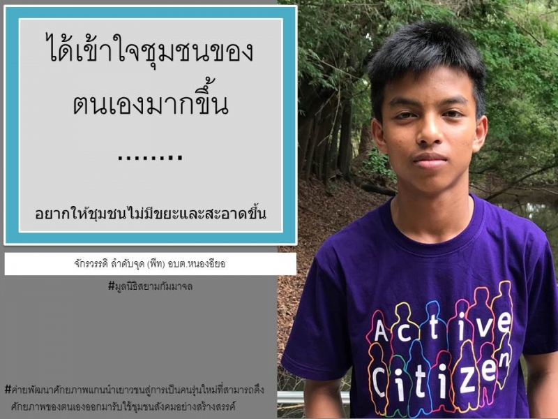 ผมอยากทำให้ชุมชนของผมมีการพัฒนา เป็นชุมชนสะอาดขึ้น ไม่มีขยะในชุมชน ให้ชุมชนมีความ