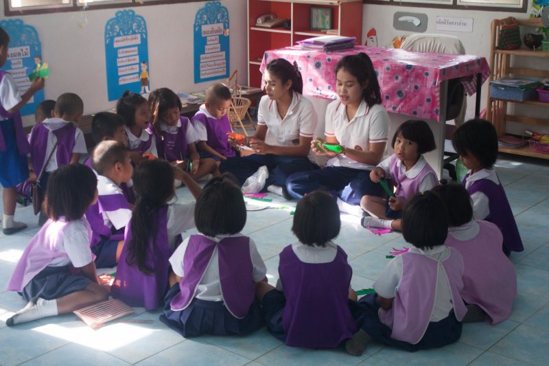 “ตอนแรกเรารับสมัครมาแล้ว 37 คน เป็นน้องปี 1 จำนวน 9 คน ปี 2 จำนวน 15 คน และปี 3 ซึ่งรวมทั้งทีมงานด้วย 13 คน แบ่ง 5 กลุ่มสาระวิชา คือ คณิตศาสตร์ อังกฤษ วิทยาศาสตร์ สังคมศึกษา ภาษาไทย และกลุ่มปฐมวัย ตอนเช้าสอน 3 คาบ บ่าย 2 คาบ ส่วนคาบสุดท้ายเป็นกิจกรรมส่งเสริมการเรียนรู้ เช่น เล่นเกม เป็นต้น เพราะในหนึ่งวันมี 6 คาบ แม้บางวิชาจะมีนักศึกษาสมัครมาไม่ครบ แต่ทีมงานก็จัดแบ่งบทบาทหน้าที่สอนให้ครบทุกสาระวิชา เช่น บางคนเอกคณิตศาสตร์แต่ต้องรับผิดชอบสอนสังคมศึกษา ชั้นประถมศึกษาปีที่ 1 จึงต้องมีการเตรียมเนื้อหาการสอนก่อน” กันต์เล่าถึงการเตรียมความพร้อม รวมทั้งการเตรียมตัวให้กับน้องปี 1 และปี 2 ที่ยังไม่มีประสบการณ์จัดการเรียนการสอนมาก่อน