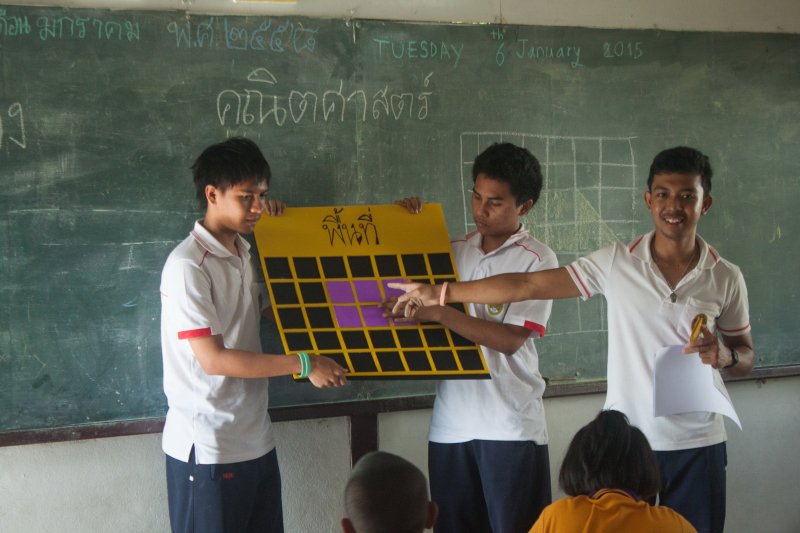 ส่วนนุ๊ค บอกว่า ตอนไปสอนจริง ๆ ไม่ได้เป็นไปตามแผนการสอนที่เตรียมไว้ เนื่องจากเด็ก ๆ ยังมีพื้นฐานไม่แน่นพอ จึงปรับเปลี่ยนจากการสอนเป็นการจัดกิจกรรมให้เด็ก ๆ ได้มีส่วนร่วมแทน “ให้น้องแบ่งกลุ่มเล่นเกมแข่งกันระดมคำศัพท์ คนที่ไม่รู้ก็จะได้รู้จากเพื่อน ๆ แทนที่จะนั่งฟังอย่างเดียว สุดท้ายเขาก็ออกมาเขียนศัพท์ได้ ถือเป็นประสบการณ์ที่ดีว่า เวลาไปเจอสถานการณ์จริง เราต้องปรับเปลี่ยนวิธีการ หาวิธีสอนให้เด็กเกิดการเรียนรู้ให้ได้”