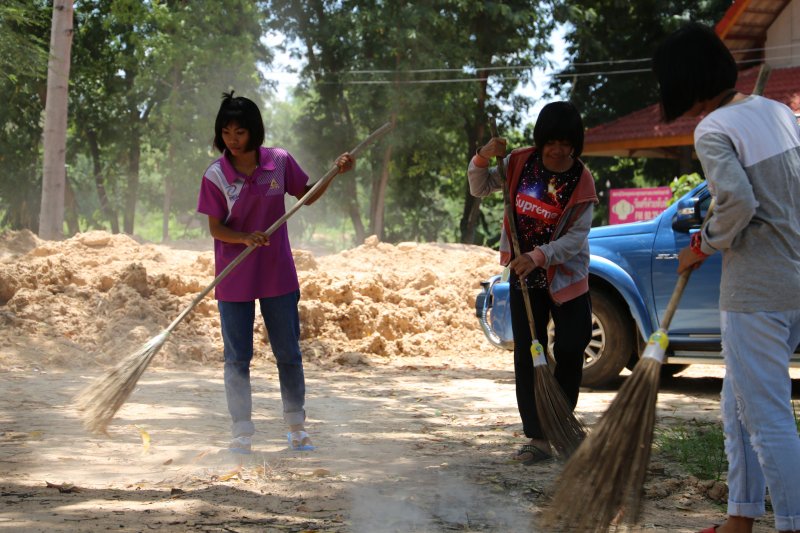 มิวเล่าว่า “ตอนเริ่มทำงานโครงการ พี่เขาให้เราเสนอว่าจะทำอะไร อย่างไร พวกเราคิดทำเรื่องพัฒนาวัด เพาะเห็ด และปลูกผัก แต่การเพาะเห็ดมีข้อเสียคือ ต้องมีคนดูแลตลอดเวลา ไหนจะต้องตื่นแต่เช้าไปดู ไปรดน้ำ ถ้าเราไปโรงเรียนก็จะไม่มีใครไปรดน้ำให้ ส่วนการปลูกผักก็ติดเรื่องรดน้ำอีก กว่าพวกเราจะกลับถึงบ้านก็ค่ำ ไหนจะงานที่โรงเรียน ไหนจะต้องติวอีก เลยลงตัวที่โครงการสะพานสายบุญแทน ซึ่งก็ตอบโจทย์ปัญหาของชุมชนมากที่สุด”