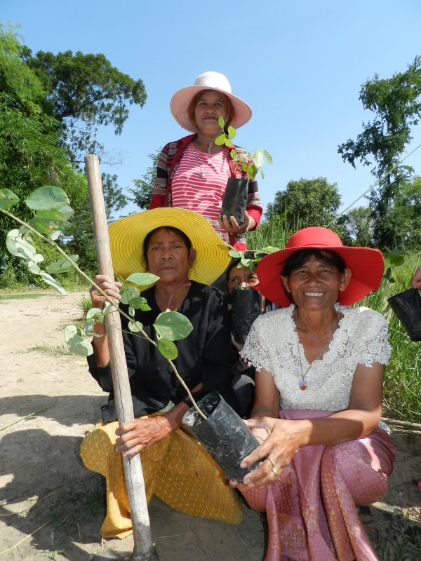 “ตอนนั้นมีงานบวช 3-4 ที่ พวกเราเลยทำได้แค่ชวนชาวบ้านปลูกต้นไม้ ติดป้ายให้ความรู้ และถ่ายรูป แจกอาหาร น้ำ ให้คนที่มาร่วมกิจกรรมของเรา” ทีมงานเล่าภาพวันปลูกต้นไม้