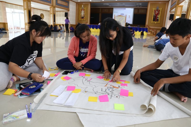 “จากข้อมูลเบื้องต้นที่เตรียมมา เรามาช่วยกันคิดว่าสนใจเรื่องไหน แล้วยังขาดเรื่องใด คิดคำถามต่อยอดจากสิ่งที่ผู้รู้เล่าให้ฟัง และสิ่งที่เราสงสัยใคร่รู้ไปเรื่อยๆ” ฝ้าย อธิบายถึงวิธีการตั้งคำถาม