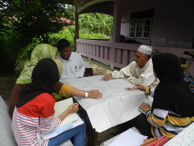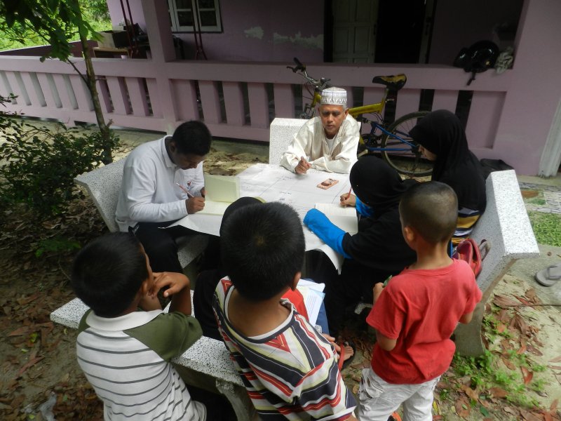 เจ๊ะฆู-อับดูลรอมัน มามะ ผู้รู้ในชุมชน เล่าว่า เขาเคยเป็นครูสอนตาดีกา ทีมงานบางคนก็เคยเป็นลูกศิษย์ เมื่อทีมงานอยากเรียนรู้เรื่องของชุมชน จึงรู้สึกยินดีที่จะให้ข้อมูล ความรู้ และให้คำปรึกษา “ความรู้ที่ถ่ายทอดให้ทีมงานส่วนใหญ่เกี่ยวข้องกับประวัติศาสตร์ตำบลและพื้นที่โดยรอบ เพื่อเชื่อมโยงว่าแต่ละส่วนเกี่ยวข้องกันอย่างไร ยกตัวอย่าง เช่น ชื่อ “ตำบลยามู” มีที่มาจากดั้งเดิมพื้นที่นี้มีต้นชมพู่เยอะ ต้นชมพู่ ภาษามลายูหรือยาวี เรียกว่า ยามู จึงเป็นที่มาของชื่อตำบล”