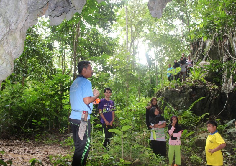“บางที่ก็ไม่เคยไป อย่างพวกหนูก็รู้แค่ว่ามีถ้ำ แต่ก็ไม่เคยไป แต่พอทำโครงการนี้ก็ได้ไป ระหว่างการสำรวจ ให้แต่ละคนถ่ายรูปจุดที่ตนเองชอบ แล้วให้มาคุยกันว่า ทำไมชอบตรงนี้ จากนั้นทำข้อมูลที่ได้มาเผยแพร่ในเฟชบุ๊กและไลน์” มิ้นเล่า หลังการสำรวจ ทีมงานให้น้องแต่ละกลุ่มสรุปข้อมูล แล้วนำมาแลกเปลี่ยนกัน พร้อมทั้งนำภาพถ่ายของแต่ละคนโพสต์ลงเฟชบุ๊กของหมู่บ้าน บอกเล่าของดีในชุมชน ทั้งแหล่งธรรมชาติ เช่น ภูเขาเอียงซึ่งเป็นอัตลักษณ์ของชุมชน ถ้ำน้ำลอด หน้าผา ลำคลอง แหล่งของกิน เช่น โรตีกรอบ ร้านกาแฟโบราณ การทำข้าวเหนียวหลาม ผักกูด หวาย ฯลฯ สถานที่สำคัญ อาทิ ถ้ำที่มีพระสงฆ์มาปฏิบัติธรรมอย่างสงบสุขท่ามกลางชุมชนอิสลาม หรือสัตว์ป่า เช่น ชะนี ลิง กระรอก เม่น ฯลฯ